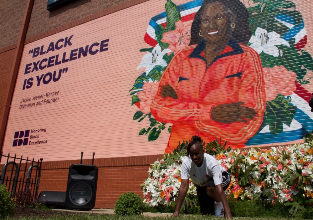 Over the weekend at a private engagement held at The Jackie Joyner-Kersee Foundation Headquarters, Adidas and Track & Field trailblazer, Jackie Joyner-Kersee gathered friends & family for an intimate mural unveiling for the launch of the Honoring Black Excellence initiative. The year-round Three Stripe mission is to recognize and celebrate the history of extraordinary Black leaders who are here with us right now, driving change for today and a better tomorrow.