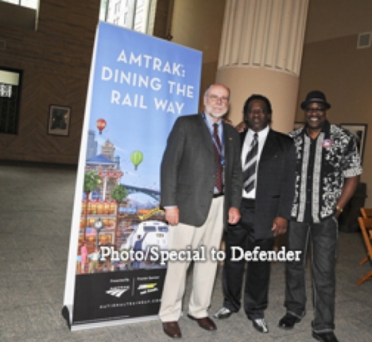 Blues music and the nation’s railroads came together downtown at Union Station recently as National Train Day 2010 rolled from the bayous in Cajun country into the Windy City. In honor of the national celebration, Amtrak took the sons of Muddy Waters – "Big Bill" and Mud Morganfield – on a musical tour through the Mississippi Delta, the birthplace of the blues, and the birthplace of their father. The tour started in New Orleans, toured Blues Markers in Mississippi, picked up blues great Bobby Rush in Memphis and ended at National Train Day festivities at Union Station in Chicago. Pictured from left, Amtrak Chairman of the Board Tom Carper, Mud Morganfield and "Big Bill" Morganfield. Photo/Special to Defender