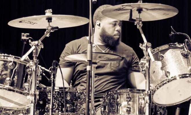 The drummer’s musical journey began at two-years-old, the age when his mother told him he first began playing with her dangling earrings as if they were cymbals.