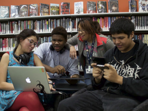 YOUmedia began as a collaboration with Digital Youth Network based on research supported by the John D. and Catherine T. MacArthur Foundation. Since opening in 2009, YOUmedia has provided Chicago’s teens with spaces to socialize together, utilize a range of digital media resources, and receive support from caring, involved mentors.