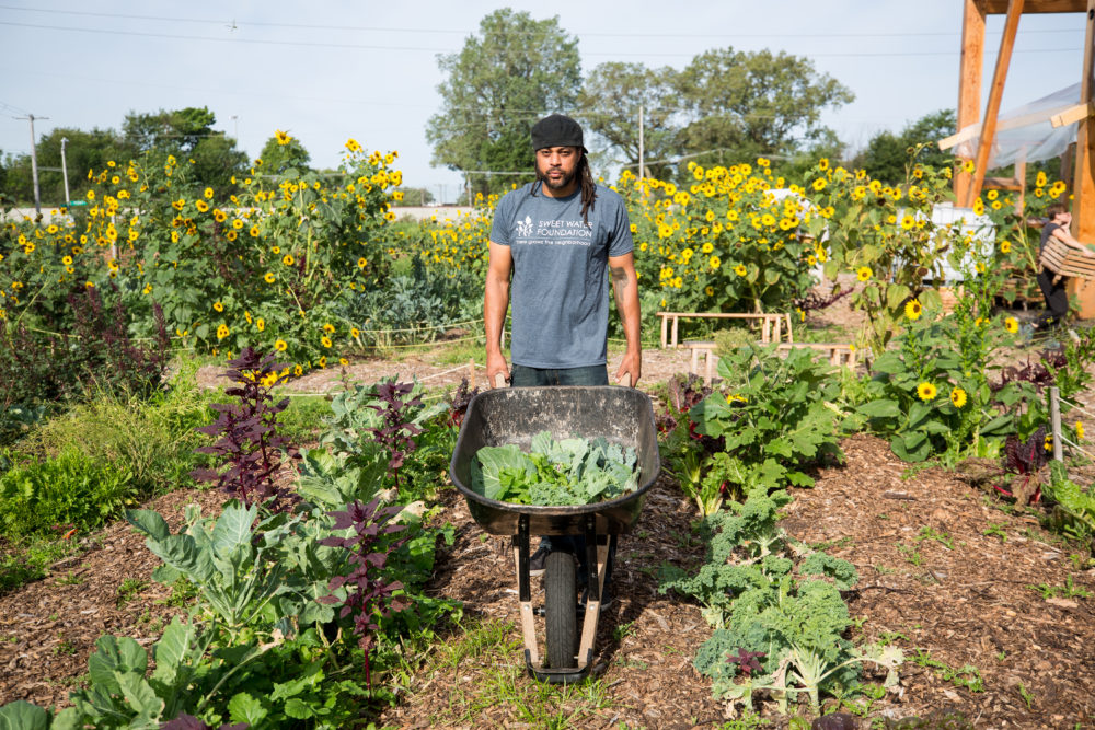 Sweet Water Foundation created a regenerative neighborhood development strategy that intersects art, education, and urban agriculture to transform vacant spaces into productive land. This strategy creates affordable housing, locally grown food, and employment in the community.