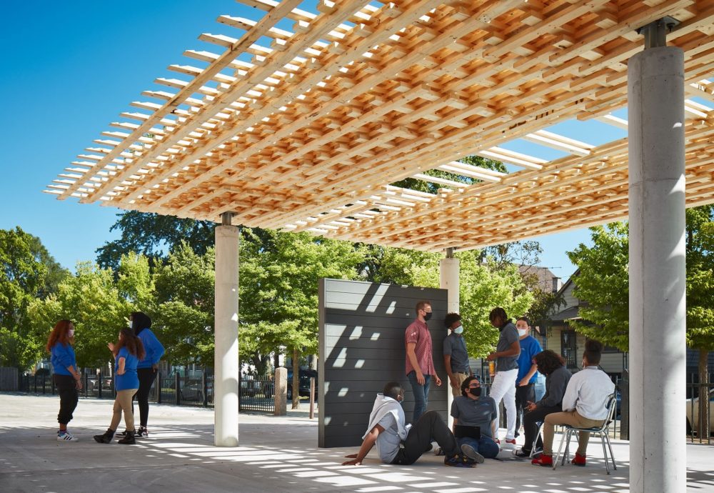 The pavilion hosted a series of performances during the Biennial and functioned as an outdoor classroom and performance venue afterwards, contributing to the future of post-pandemic teaching and learning. The pavilion was designed and constructed in partnership with Autodesk, McHugh Construction, Gremley & Biedermann, and REX Engineering Group.