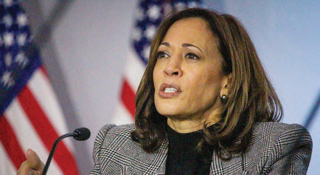 VP KAMALA HARRIS SPEAKS WITH COURIER EDITOR AND PUBLISHER ROD DOSS IN FEBRUARY 2024.
