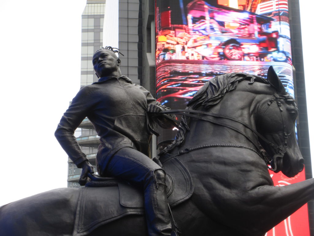 Original (October 1, 2019): Kehinde Wiley unveiled his latest piece in the middle of Times Square.