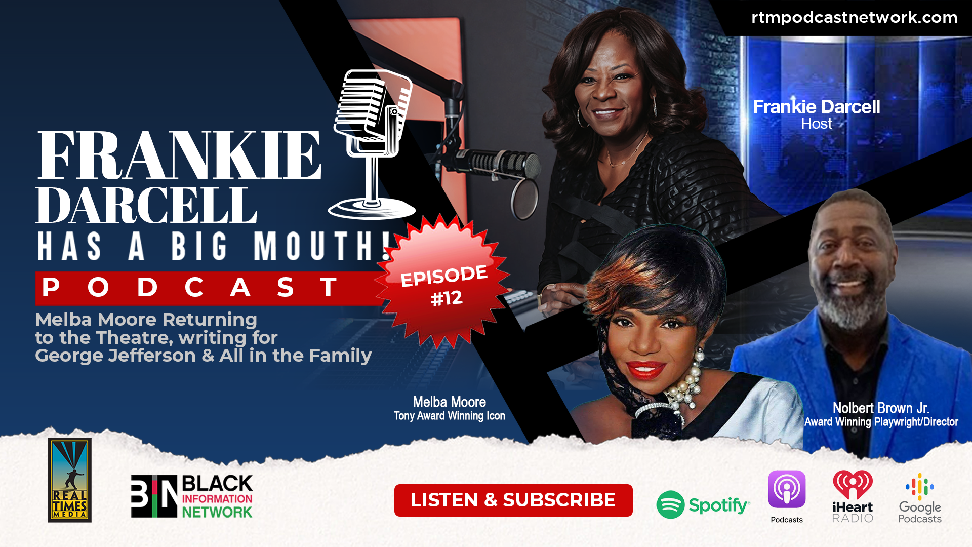 In this episode, Frankie Darcell talks with Tony Award Winning Icon Melba Moore and Award Winning Playwright/Director Nolbert Brown Jr. about their storied careers on Broadway, and how things are coming full circle with their new ‘Imitation Of Life’ stage play opening February 15, 2023 in Philadelphia.
