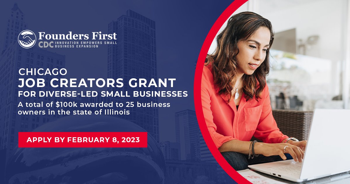 Founders First CDC (Founders First), a national 501(c)(3) non-profit organization that empowers expansion in diverse founders leading revenue-generating businesses, has opened a grant totaling $100,000 for underrepresented business owners in Chicago and throughout the state of Illinois. The purpose of this grant is to help diverse-led business owners create premium-wage jobs in Illinois.