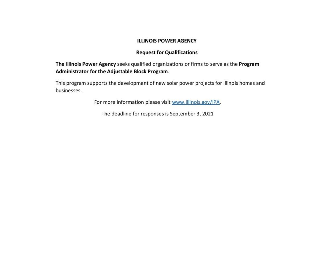 Now Hiring: Illinois Power Agency Adjustable Block Program Administrator Chicago Defender Newsroom 5 years ago