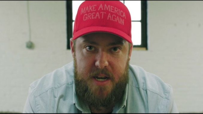 The video starts with a white man spitting an incendiary rap. He is dressed in a button up and khakis, rocking a MAGA hat. We see later that he is rapping at a black man dressed in baggy clothing with dreadlocs and thug appeal. The men are seated across from one another at a small table. There is visible tension.
