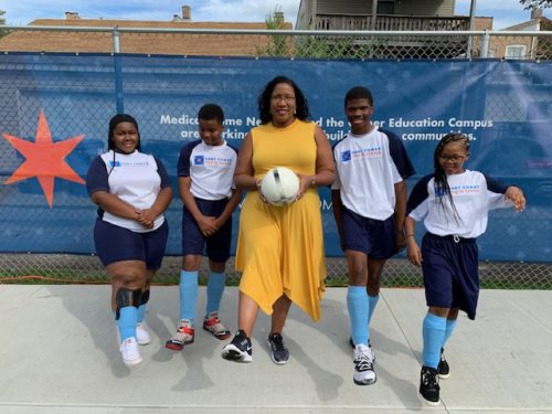 Young people who love soccer, City Treasurer Melissa Conyears-Ervin and 5thWard Alderman Leslie Hairston, joined officials from the U.S. Soccer Foundation, as well as Stephanie Comer, of the Comer Foundation. Money for the field came from the Comer Foundation, the U.S. Soccer Foundation and the Medial Home Network.