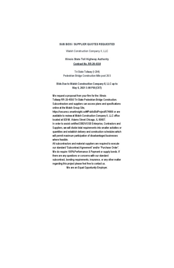 SUB BIDS / SUPPLIER QUOTES REQUESTED: Walsh Construction Company II, LLC Chicago Defender Newsroom 5 years ago