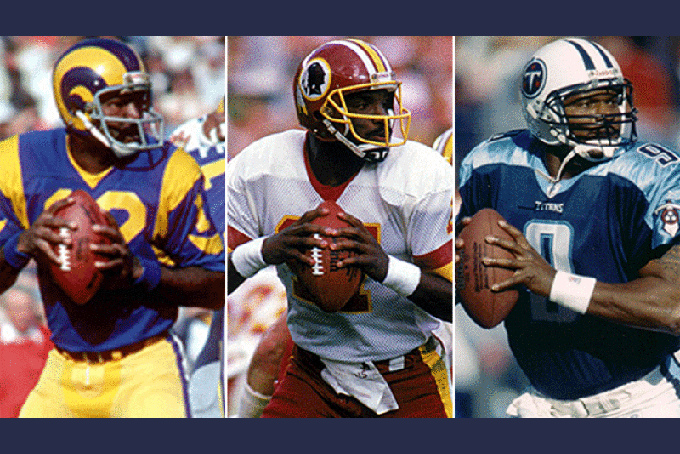 (L-R) Former SWAC quarterbacks, James Harris (Los Angeles Rams), Doug Williams (Washington Redskins), and Steve McNair (Tennessee Titans) were listed on the ballot as ESPN.com’s Rank’Em: asks fans to rank the top ten African-American QBs of all time.